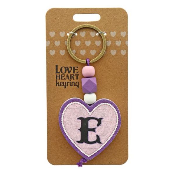 Only 1 left!Letter E Love Heart Keyring- Regular price