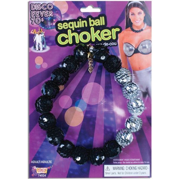 11 in stockDISCO-SEQUIN BALL CHOKER SILVER/BLACK- Regular price
