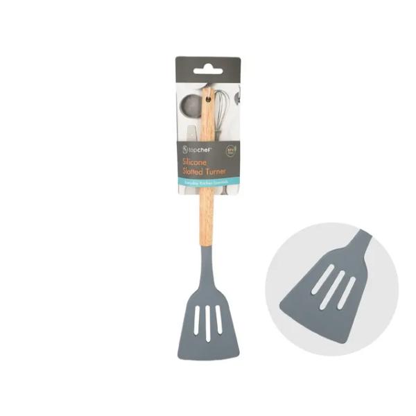 Grey Slotted Turner With Wooden Handle - 31.6cm x 6.7cm