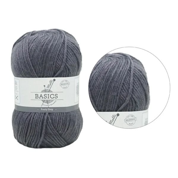 25 in stockFooty Grey Basic Super Blend Yarn - 100g- Regular price