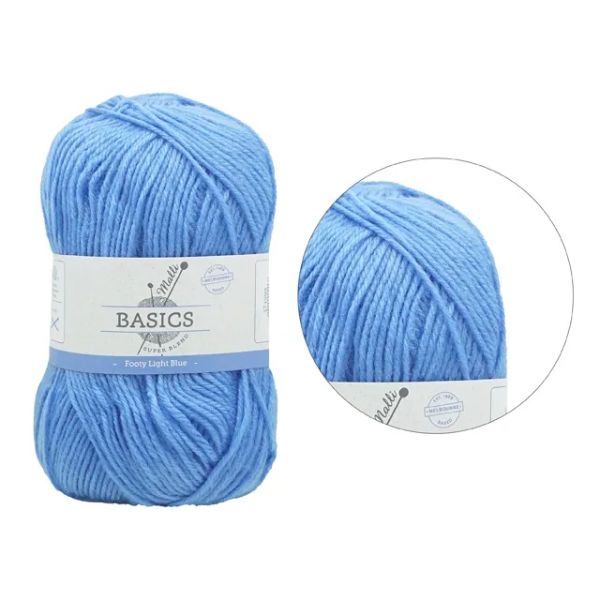 25 in stockFooty Light Blue Basic Super Blend Yarn - 100g- Regular price