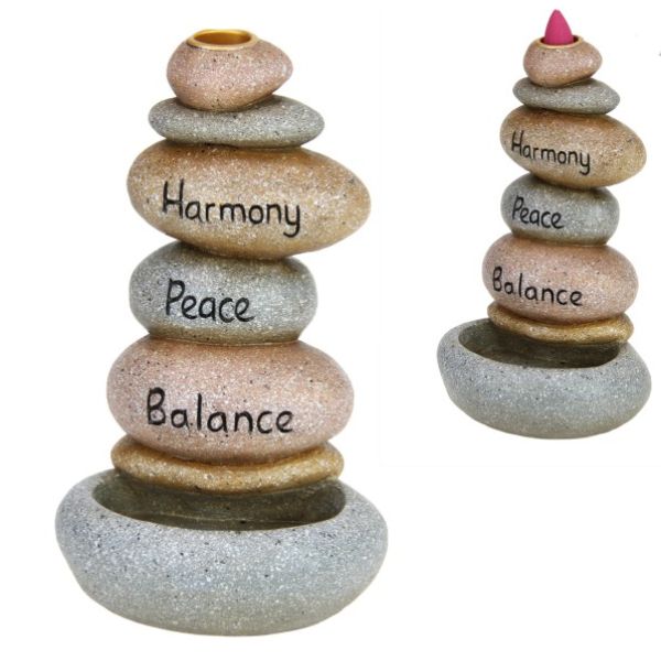 Only 2 left!Cairn Stack Backflow Burner With Inspirational Wording - 18cm- Regular price