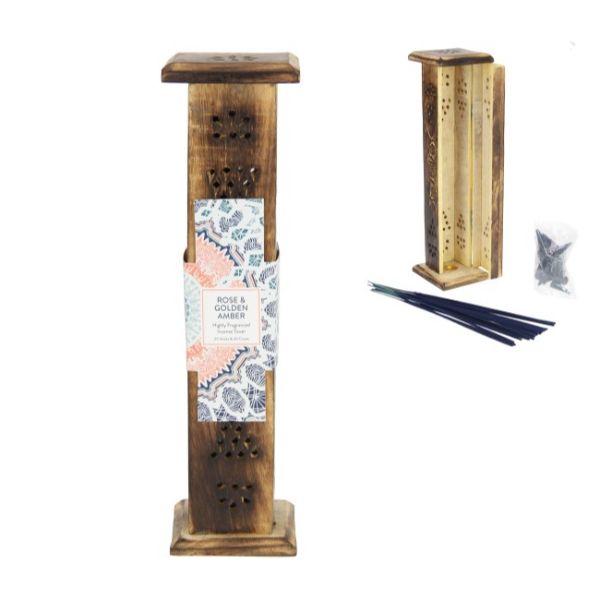 Only 4 left!Incense Tower With Rose & Golden Amber Wrap & Sticks