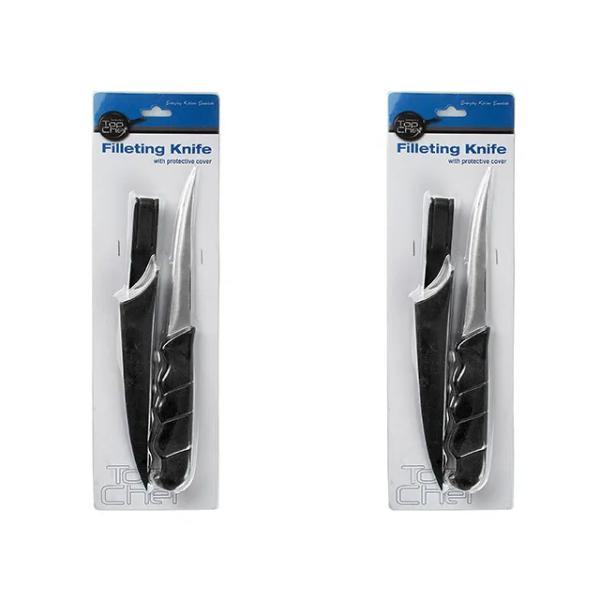 7 in stockBlack Handle Fish Knife With Case - 3cm x 27cm