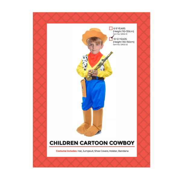 Cartoon Cowboy Children Costume - 6 - 9 Years