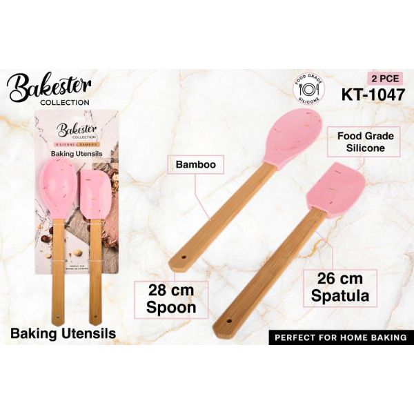 Only 3 left!2 Pack Pink Silicone Bamboo Baking Utinsils