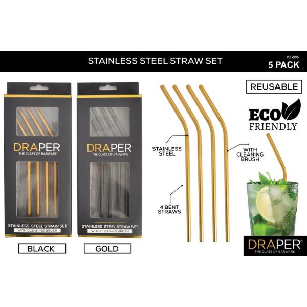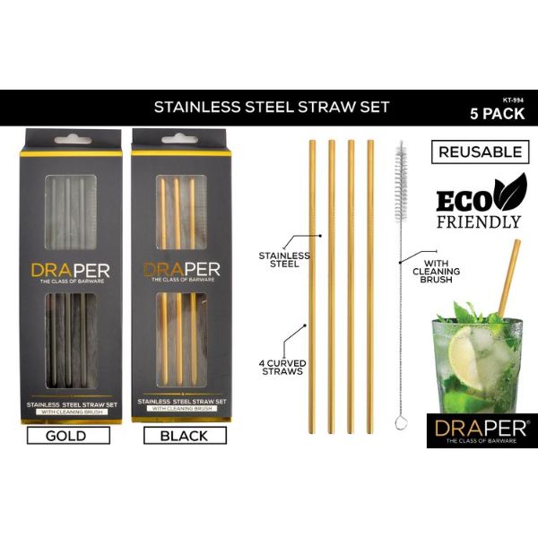 19 in stock5 Pack Stainless Steel Cocktail Straw Set