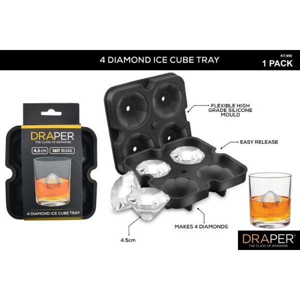 9 in stock1 Pack 4 Diamonds Silicone Ice Cube Tray