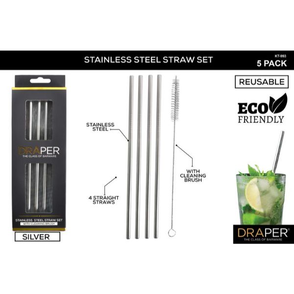 5 Pack Stainless Steel Straight Cocktail Straw Set