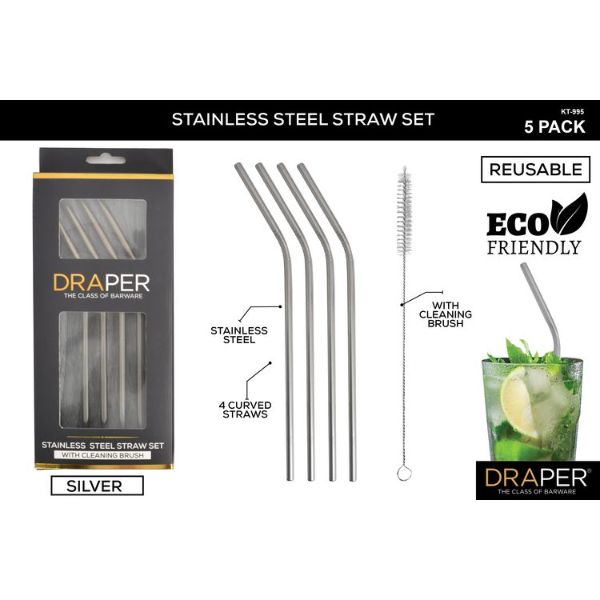 17 in stock5 Pack Stainless Steel Cocktail Straw Set