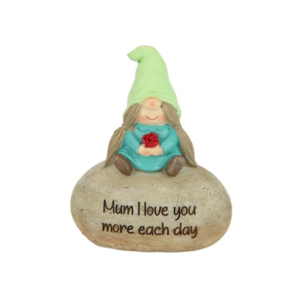 Only 3 left!Gnome On Rock Wording For Mum - 9cm