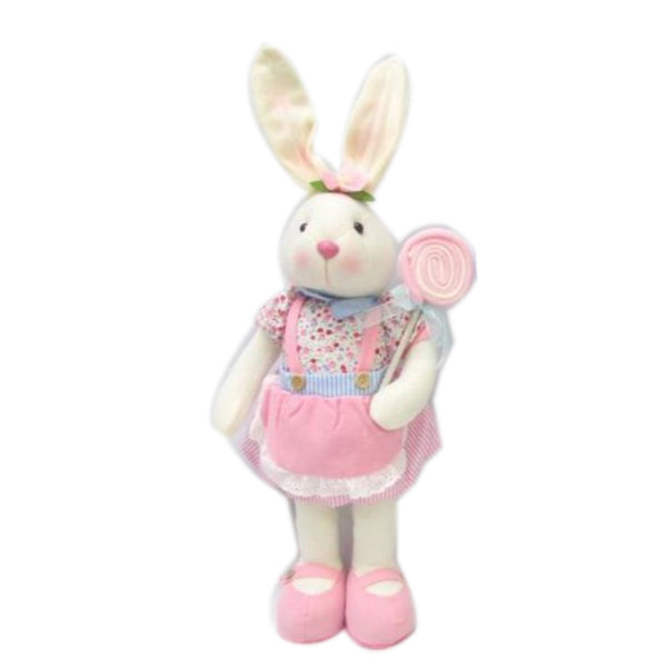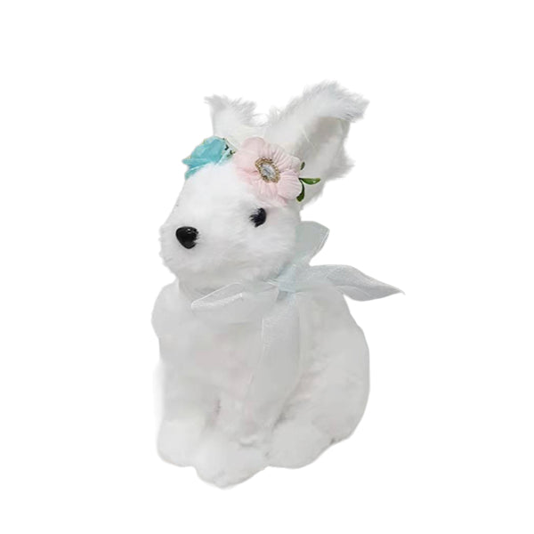 9 in stockPlush Rabbit With Flower Decor - 15cm x 13cm x 20cm