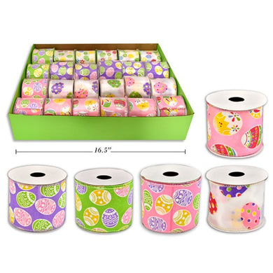 EASTER RIBBON PRITED W/WIRE 3YD/2.74M 6.35CM WIDE SATIN/BURLAP MIXED