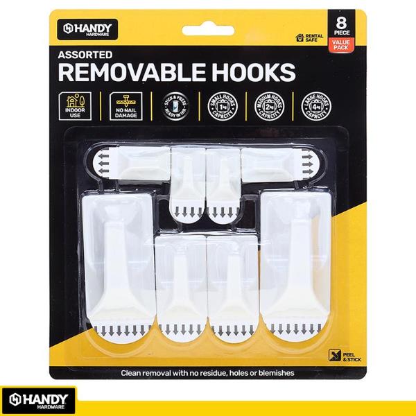 Only 3 left!8 Pack Rectangle White Plastic Removable Hooks