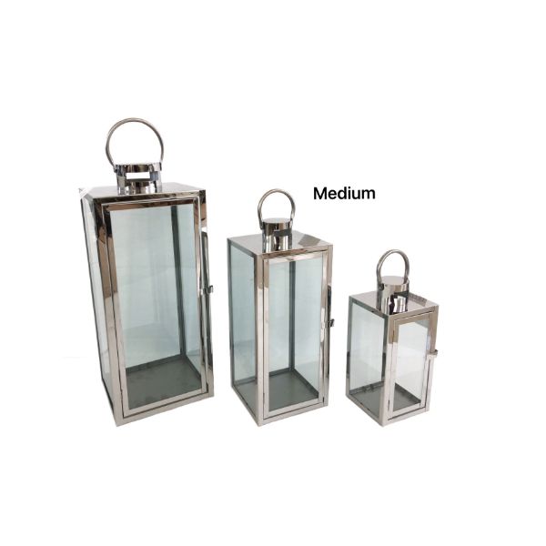Medium Polish Silver Metal & Glass Lantern - 14cm x 39cm