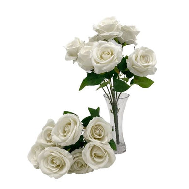 Artificial White 7 Heads Rose Bouquet - 46cm