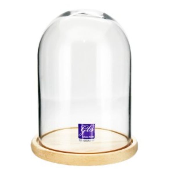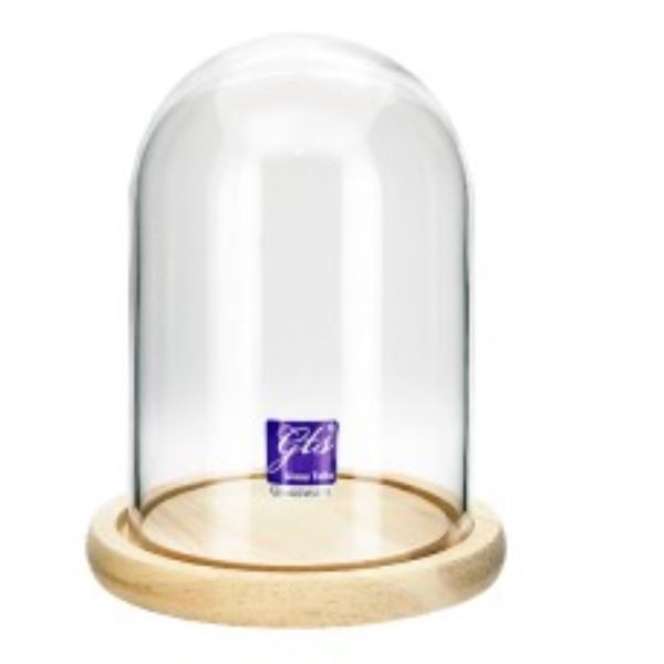 Glass Dome On Wood Base - 18.5cm