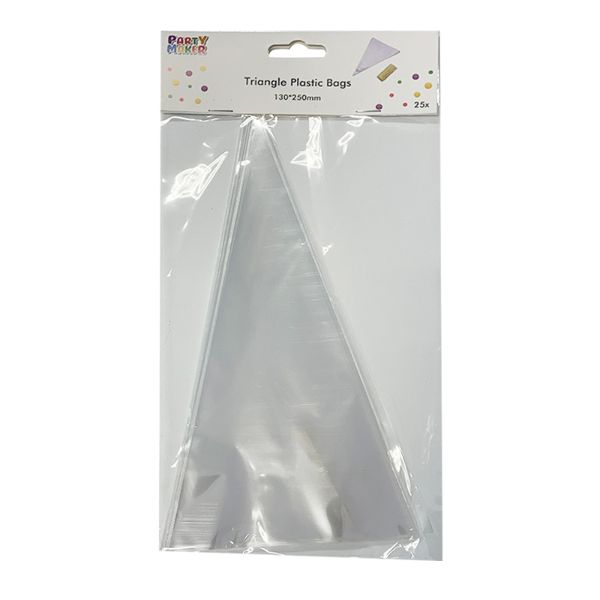 25 Pack Triangle Plastic Bags with Gold Tie - 13cm x 25cm