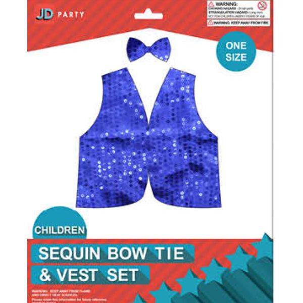 Dark Blue Kids Sequin Bow Tie & Vest Set