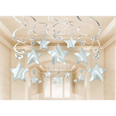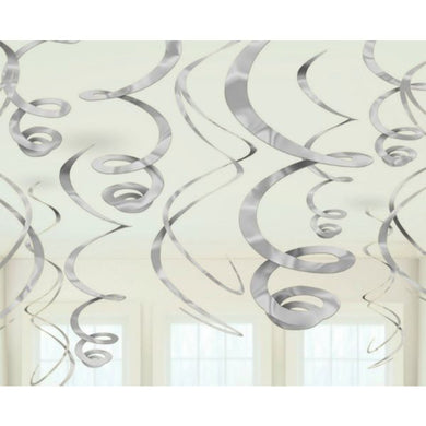 12 Pack Silver Plastic Swirl Decorations - 56cm