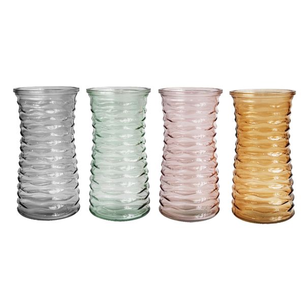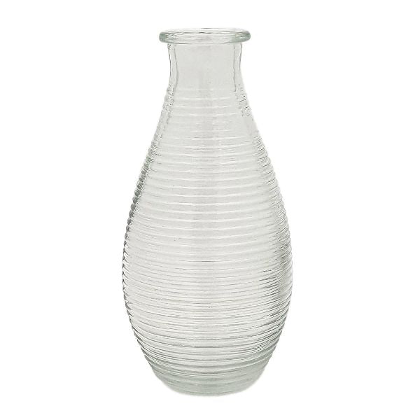 Only 1 left!Ribbed Clear Glass Vase - 7cm x 7cm x 14cm
