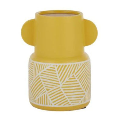 White & Yellow Finlo Ceramic Vase - 16.5cm x 20cm