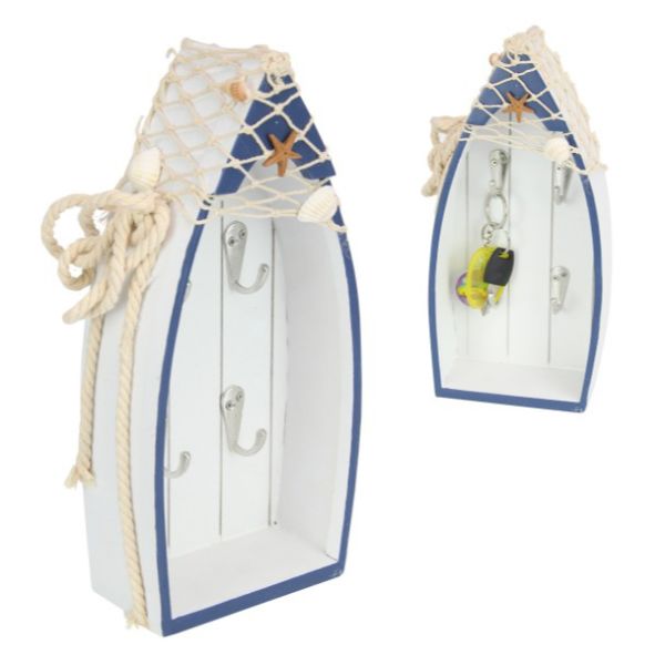 Navy and White Beach Boat Key Rack - 25cm