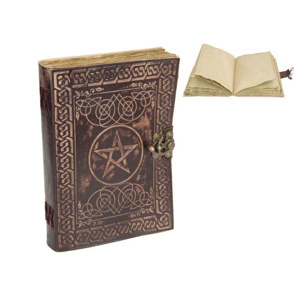 Antique Paper Leather Journal/Spell Book with Pentagram Design - 25cm x 18cm