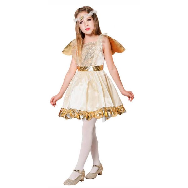 Girls Gold Angel Dress Costume - Size 6-9 Years