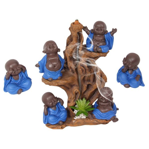 9 in stockCute Blue/White Sitting Monk - 8cm