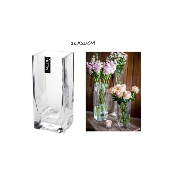 Only 2 left!Glass Square Vase - 10cm x 10cm x 20cm