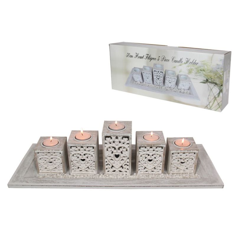 Heart Filigree 5 Piece Candle Holder - 50cm