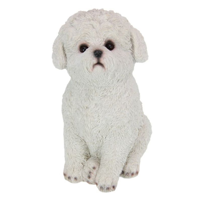 White Sitting Cute Bichon Frise Dog Figurine - 25cm
