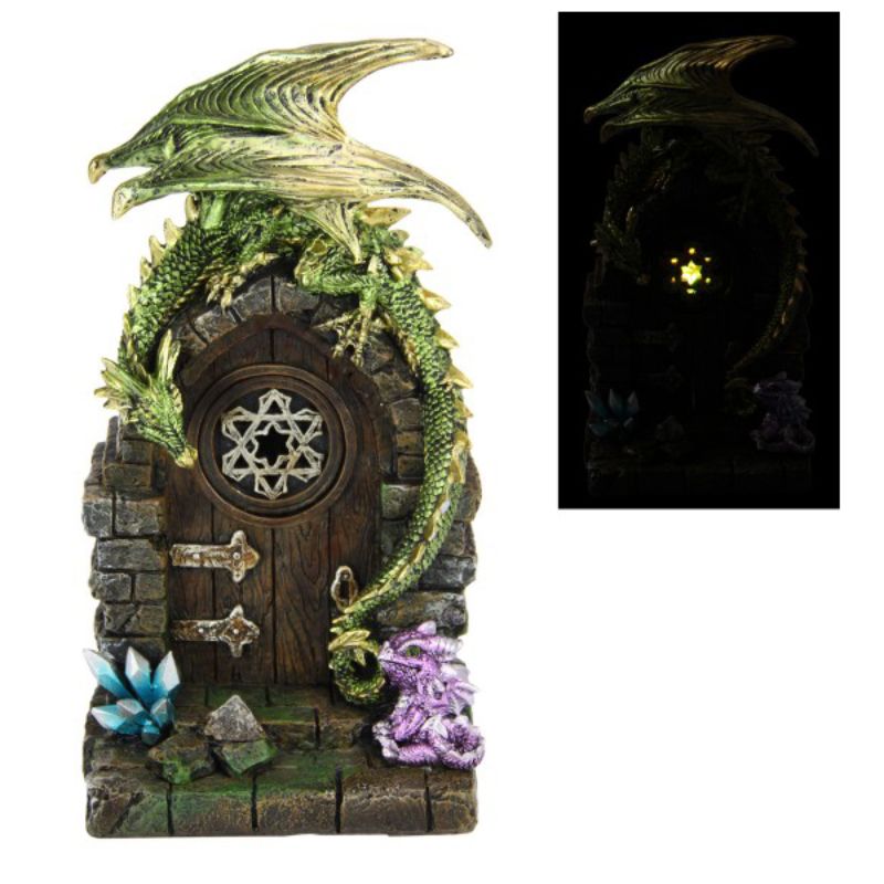 Only 2 left!Green Dragon with Baby on Mystic Realm Door - 25cm