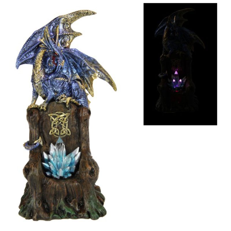 Blue Dragon on Mystic Realm Throne Guarding Crystal - 26cm