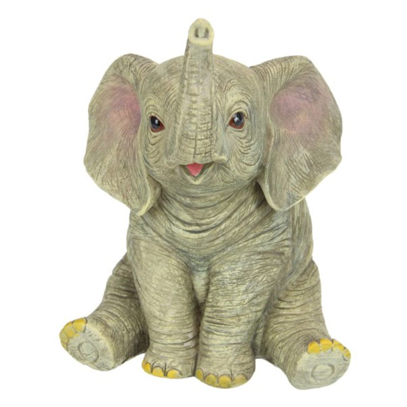 Cute Sitting Grey Elephant with Trunk Up - 20cm