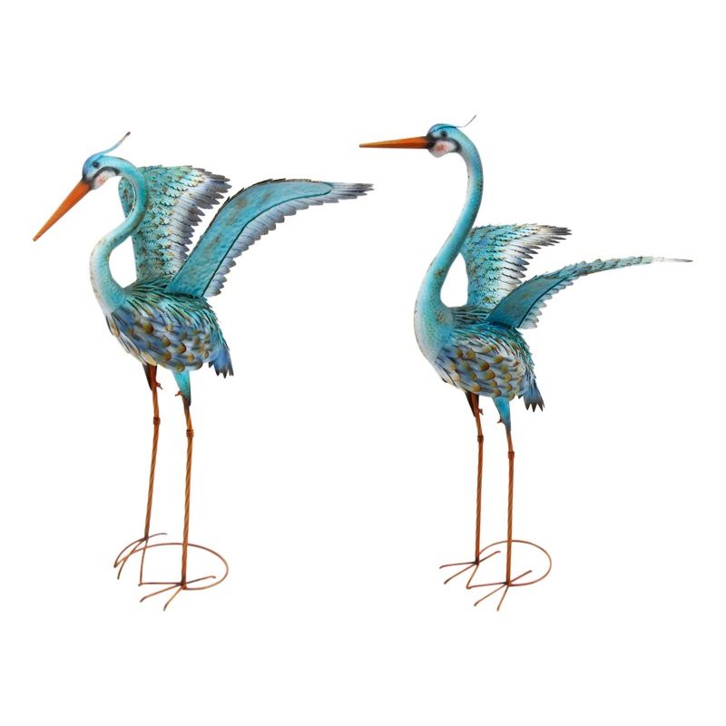 Blue Metal Crane with Wings Up - 120cm | 102cm