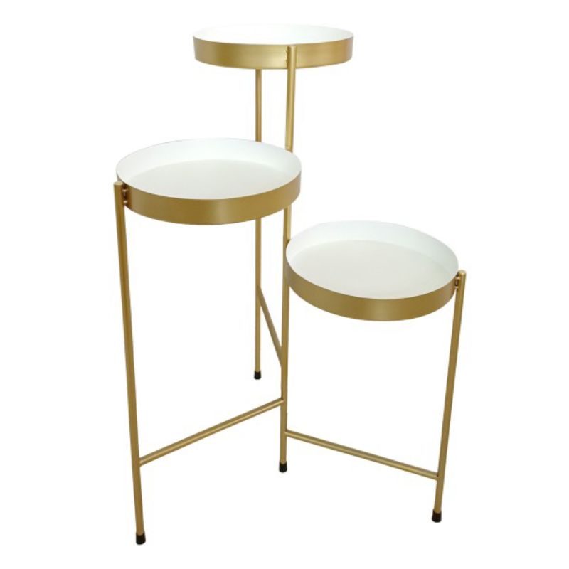 3 Tier White and Gold Metal Planter Stand - 68cm