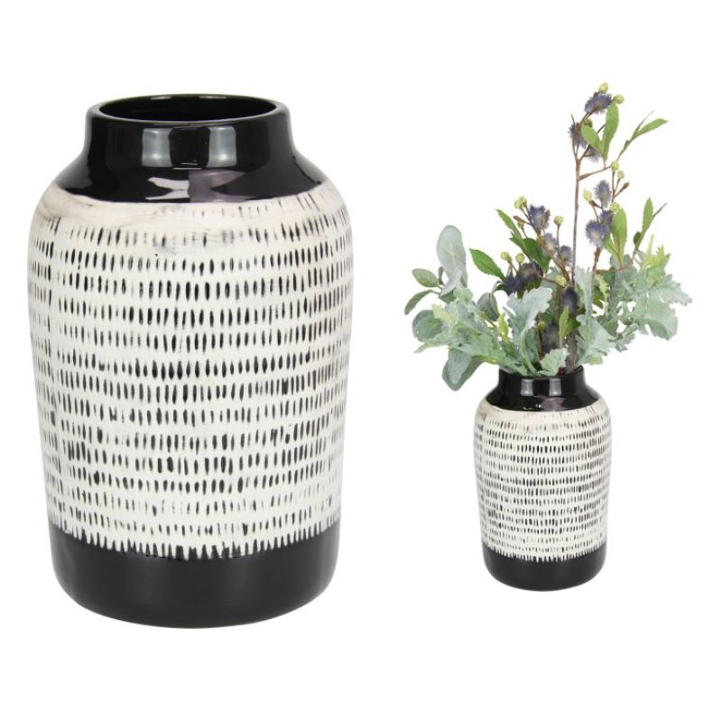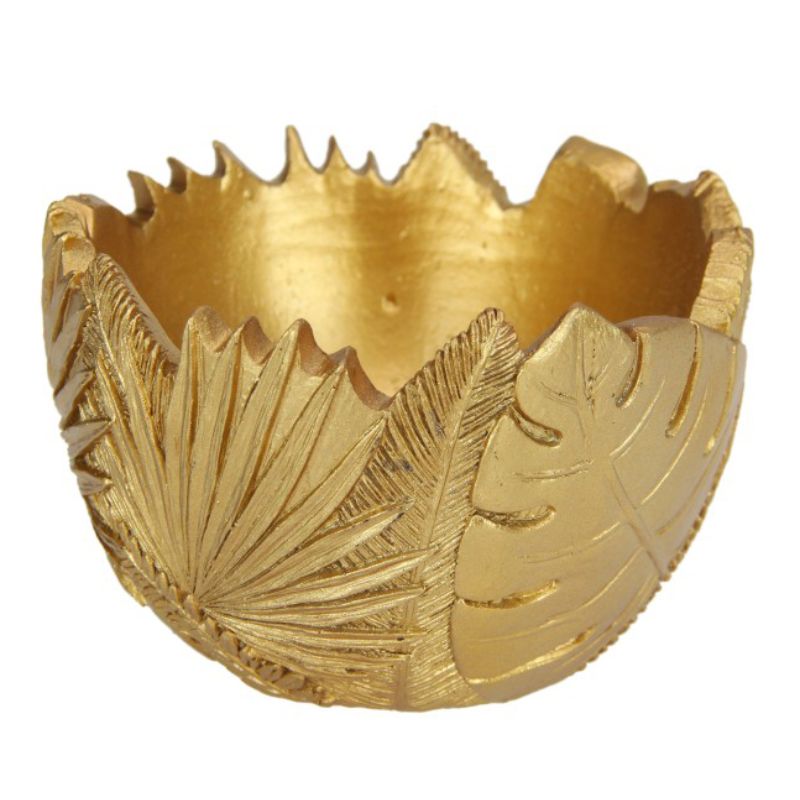 Black and Gold Pillar Candle Holder with Fern Design - 19cm