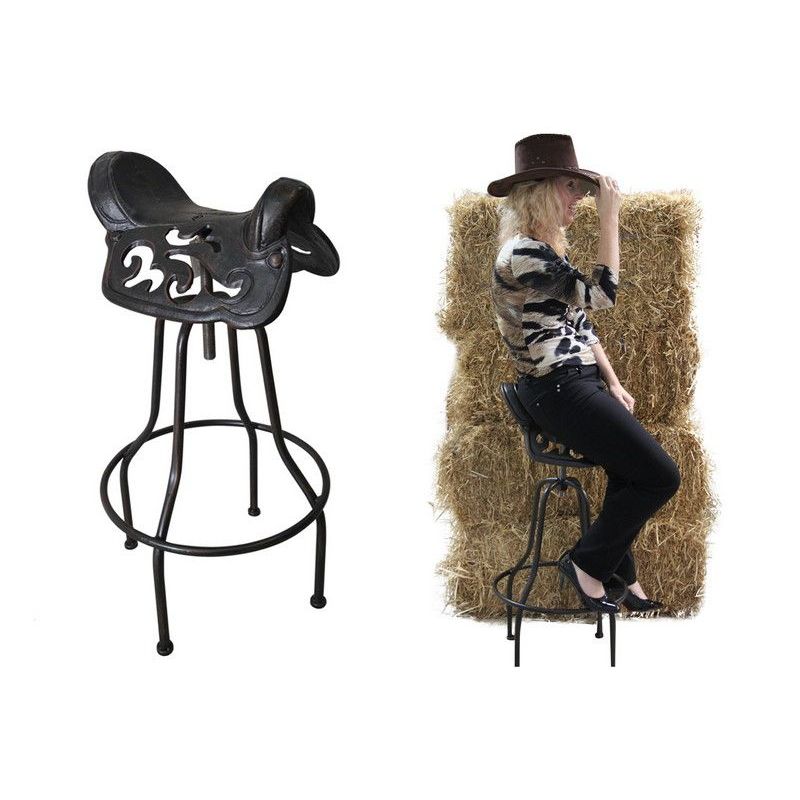 Antique Adjustable Horse Saddle Bar Stool - 95cm