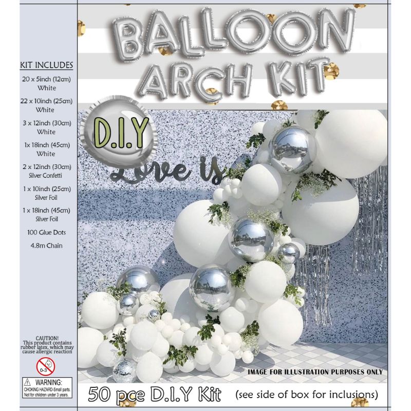 50 Pieces Silver & White Balloon Arch Kit- Regular price