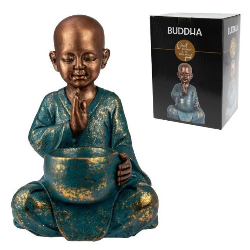Blue & Gold Sitting Monk Statue with Bowl - 30cm