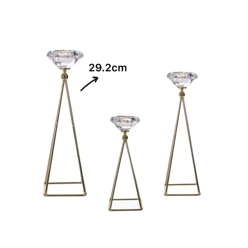 Gold Metal & Diamond Glass Candle Holder - 29.2cm