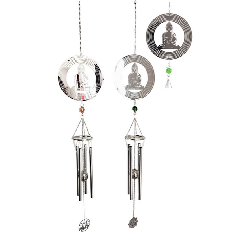 Silver Meditating Buddha Spinning Wind Chime