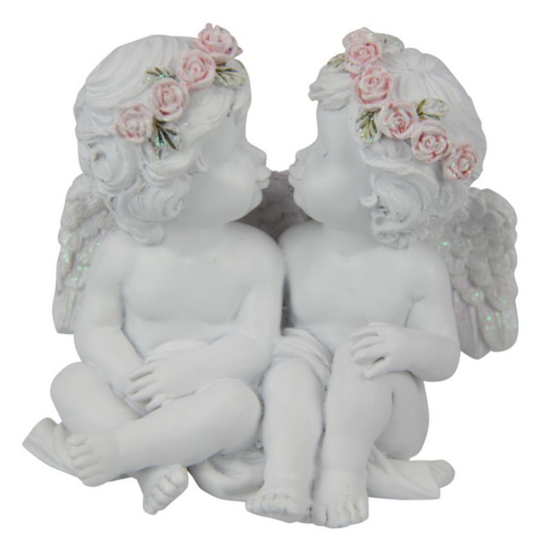 Only 1 left!Standing Cherub Couple with Rose Band - 10cm