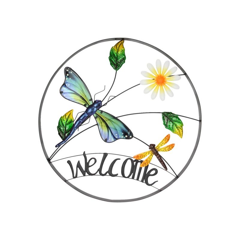 Welcome Dragonfly and Daisy Round Wall Art - 54cm