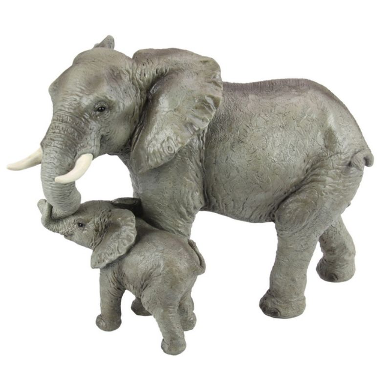 Long Elephant with Baby Holding Trunk - 36cm