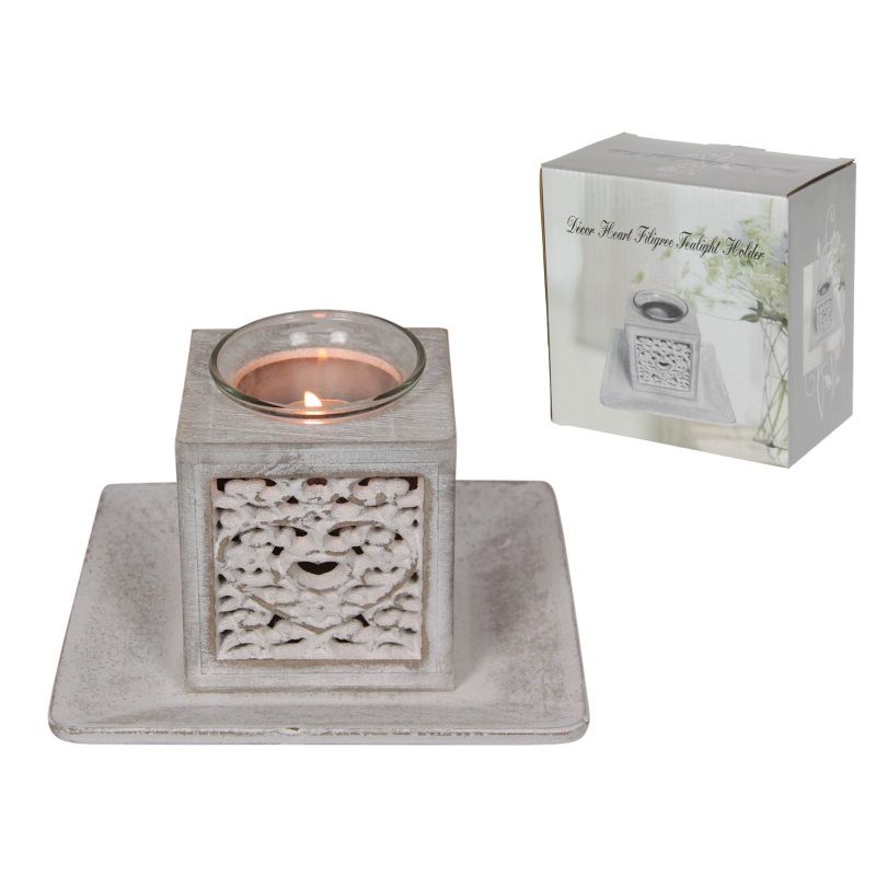 Decor Heart Filigree Tealight Holder in Gift Box - 15cm