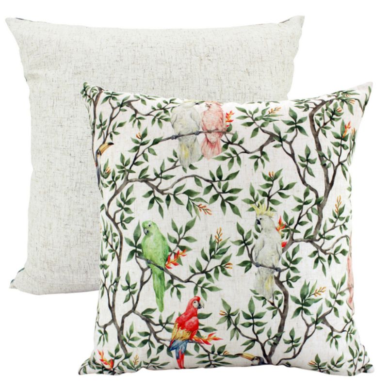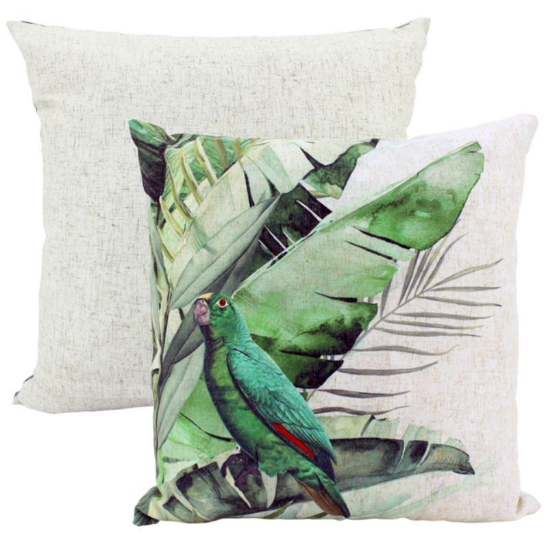 Green Parrot Jungle Cushion - 50cm x 50cm