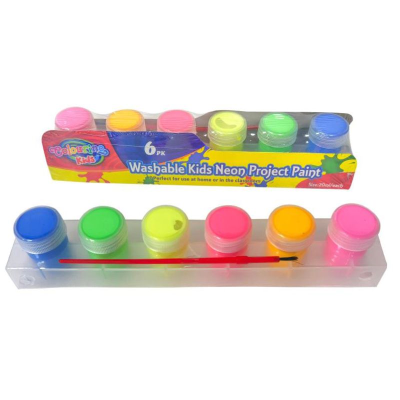 6 Pack Kids Washable Neon Colours Project Paint - 20ml